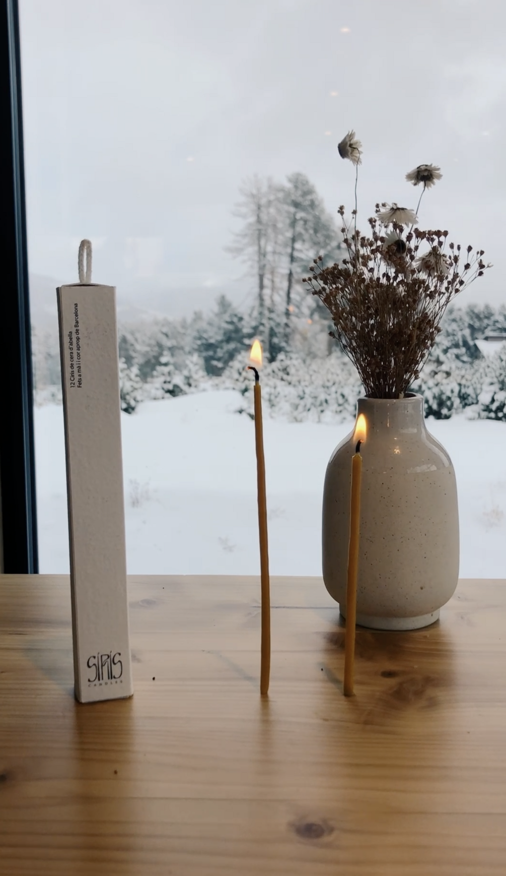 Box with 12 Pure beeswax candles. Hand-dipped in a town close to Barcelona. White 100% coton wicks.